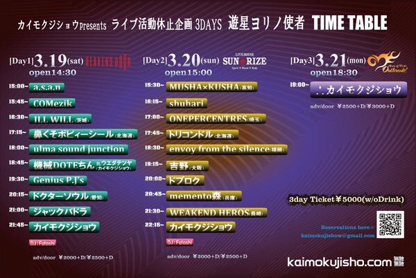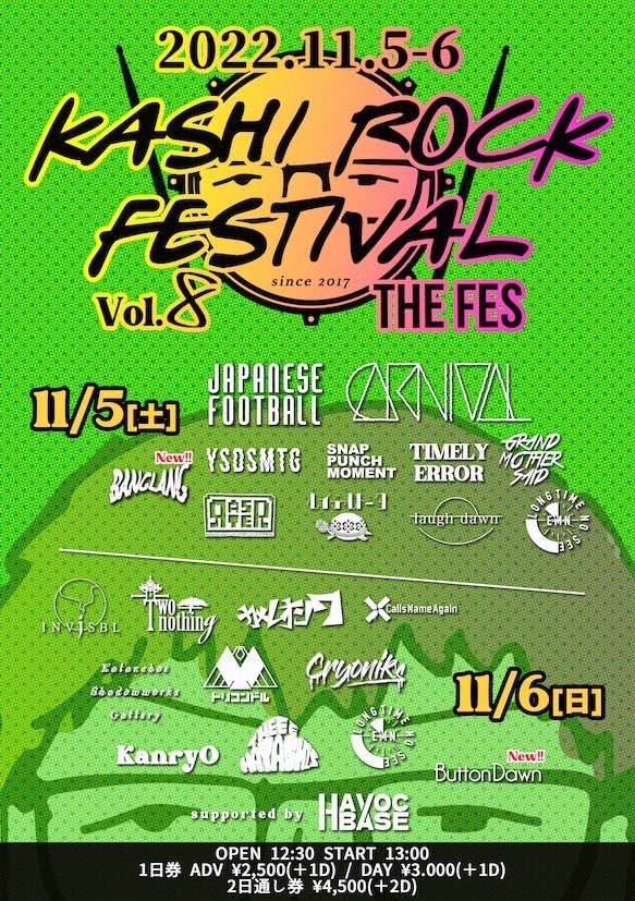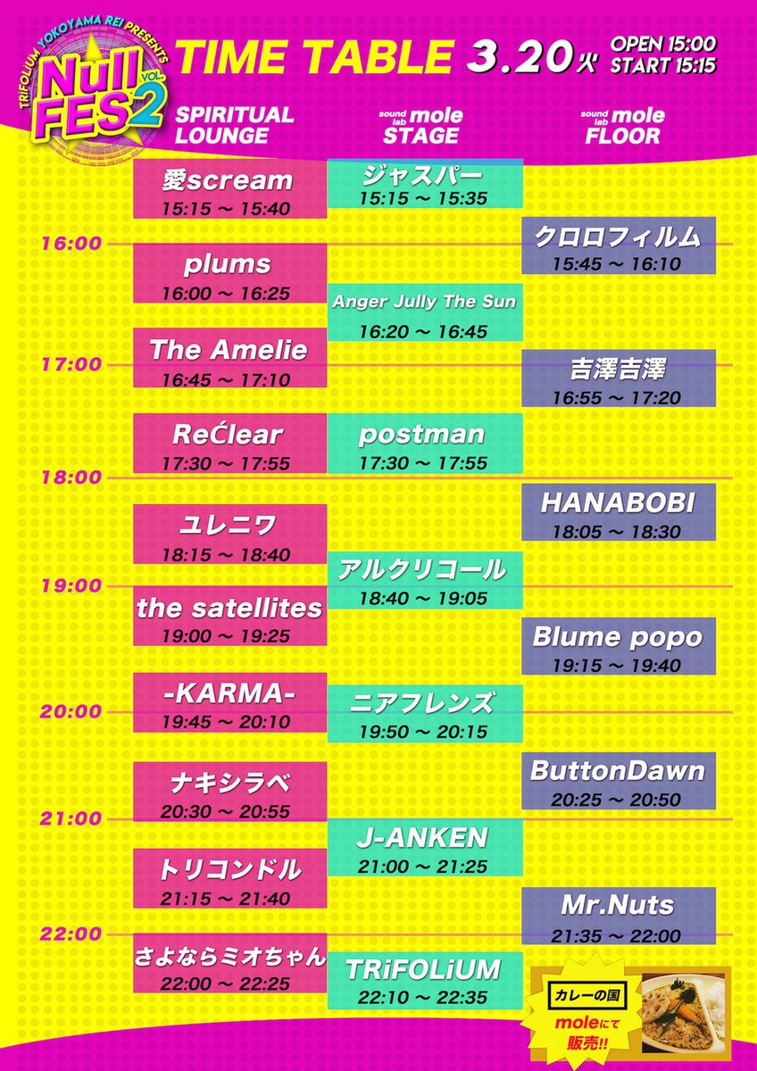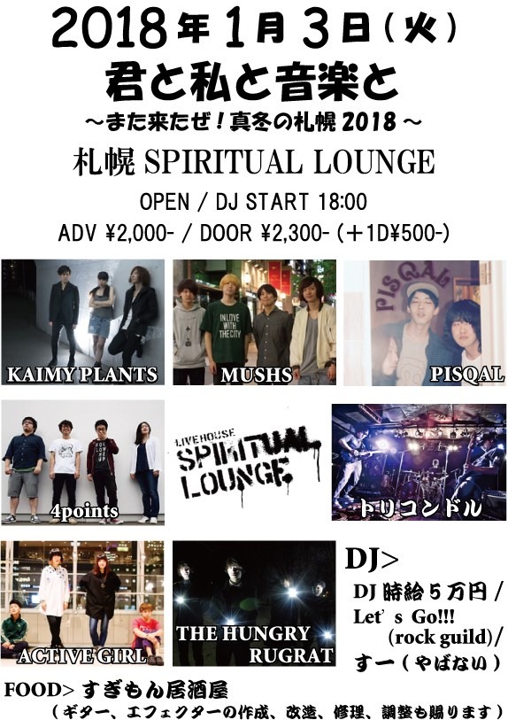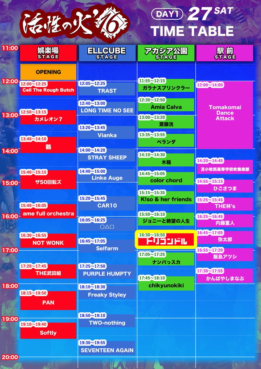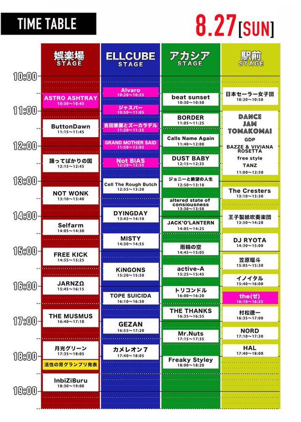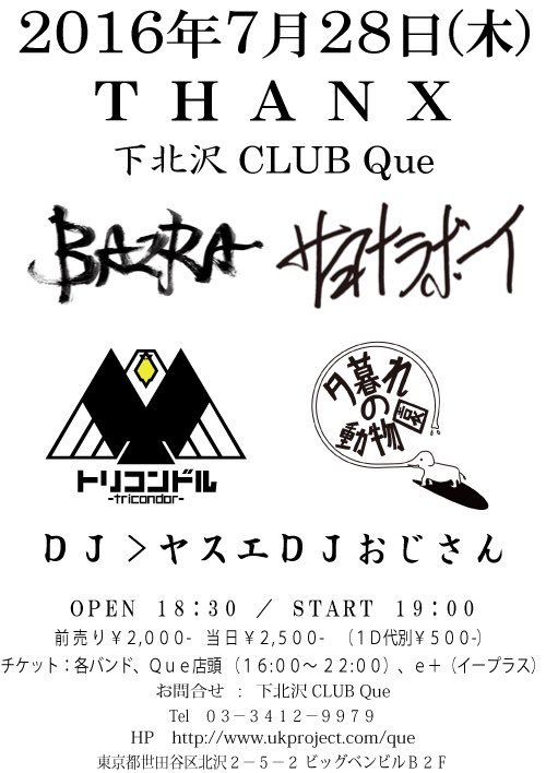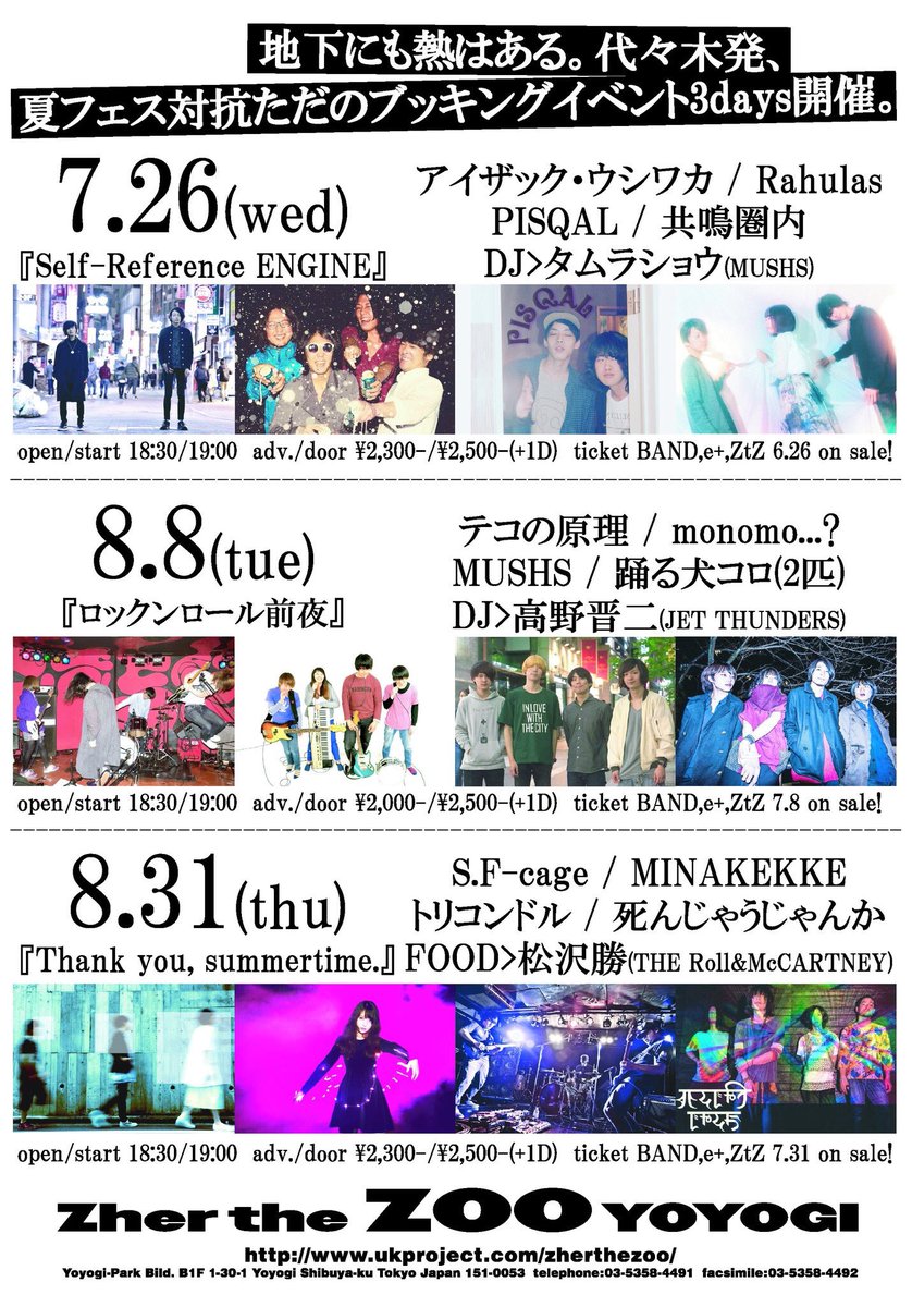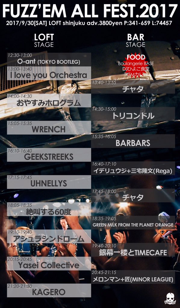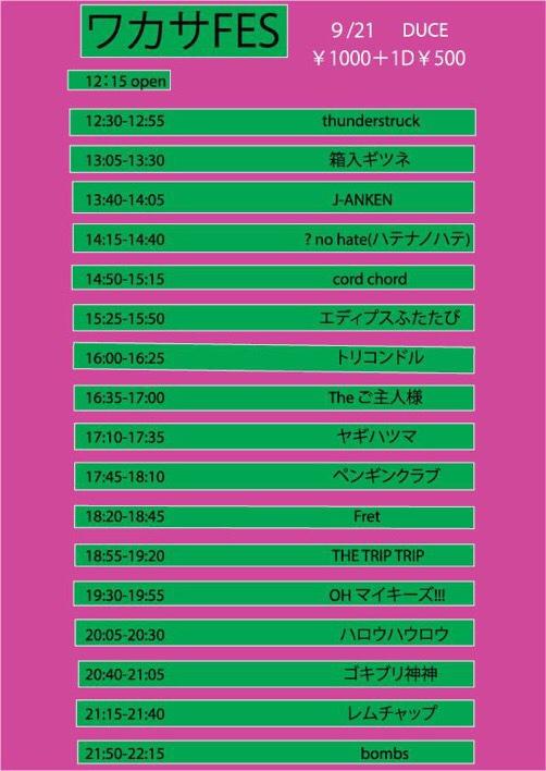 トリコンドル / ? no hate / The ご主人様 / Fret / OH!!マイキーズ / J-ANKEN / bombs / ハロウハウロウ / cord chord / THE TRIP TRIP / エディプスふたたび / レムチャップ / ヤギハツマ / ゴキブリ神神 / 箱入ギツネ / thunderstruck / ペンギンクラブ /