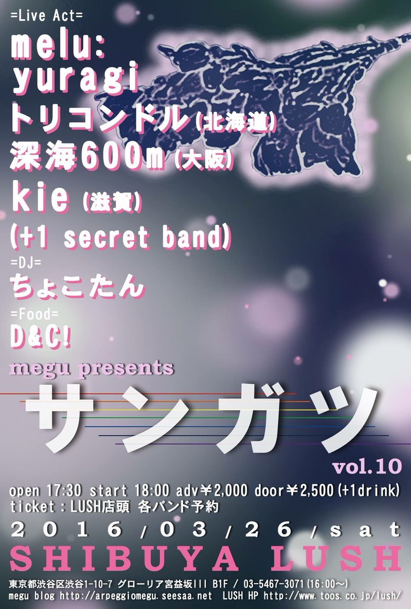 トリコンドル / ENTHRALLS(東京) / THE HUNGRY RUGRAT / Sun9th / THE TRIP TRIP / シュム=シュムグミラスティクム /