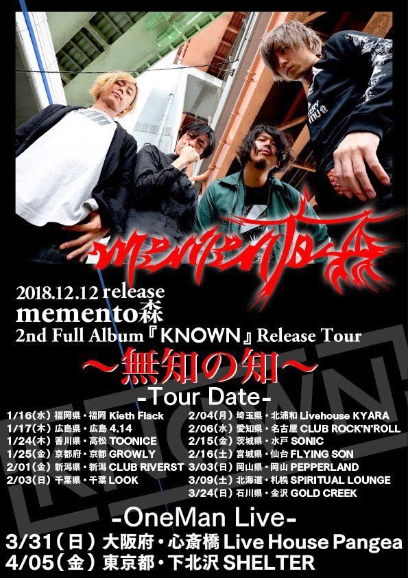 memento森 2nd Full Album『KNOWN』Release Tour~無知の知~