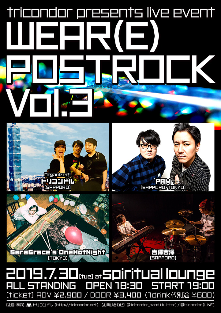 トリコンドル / PAM(札幌 / 東京) / SaraGrace’s OneHotNight(from KAGERO・東京) / 吉澤吉澤 /